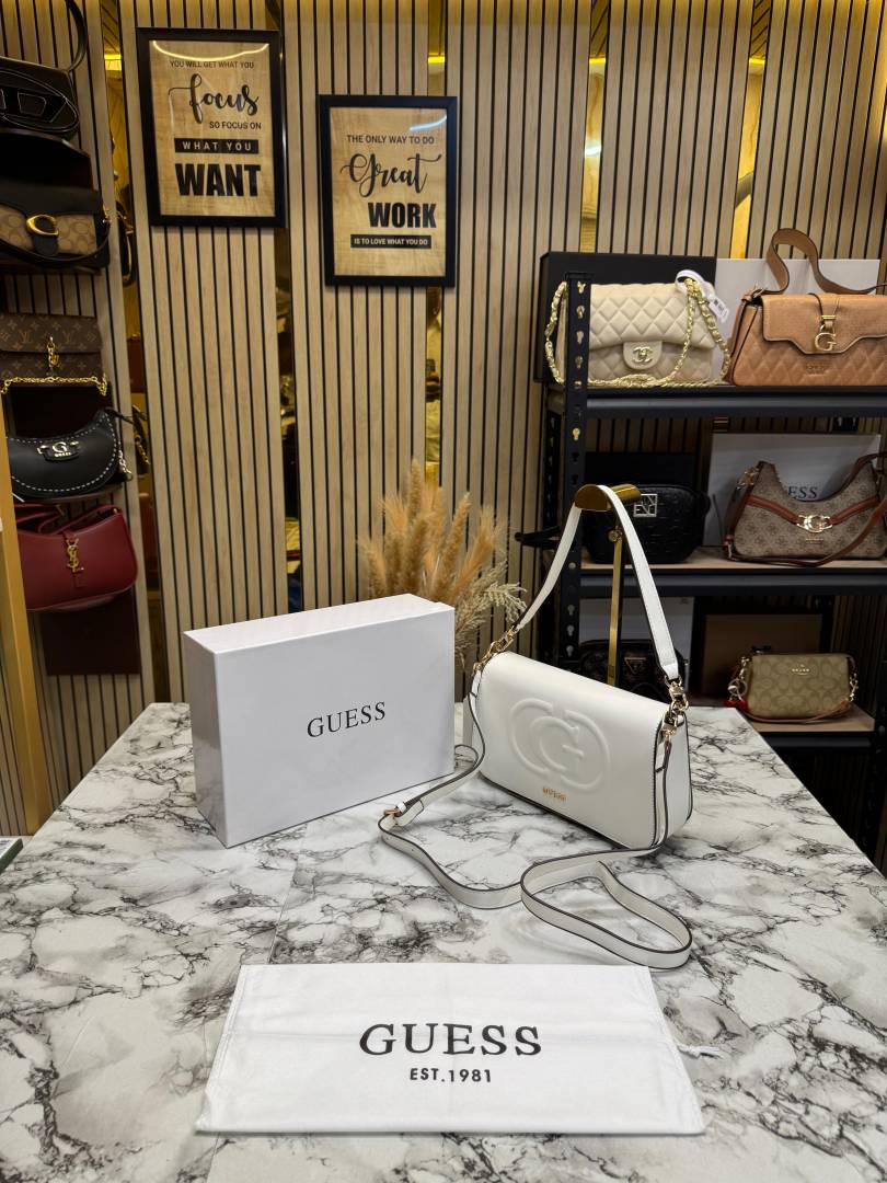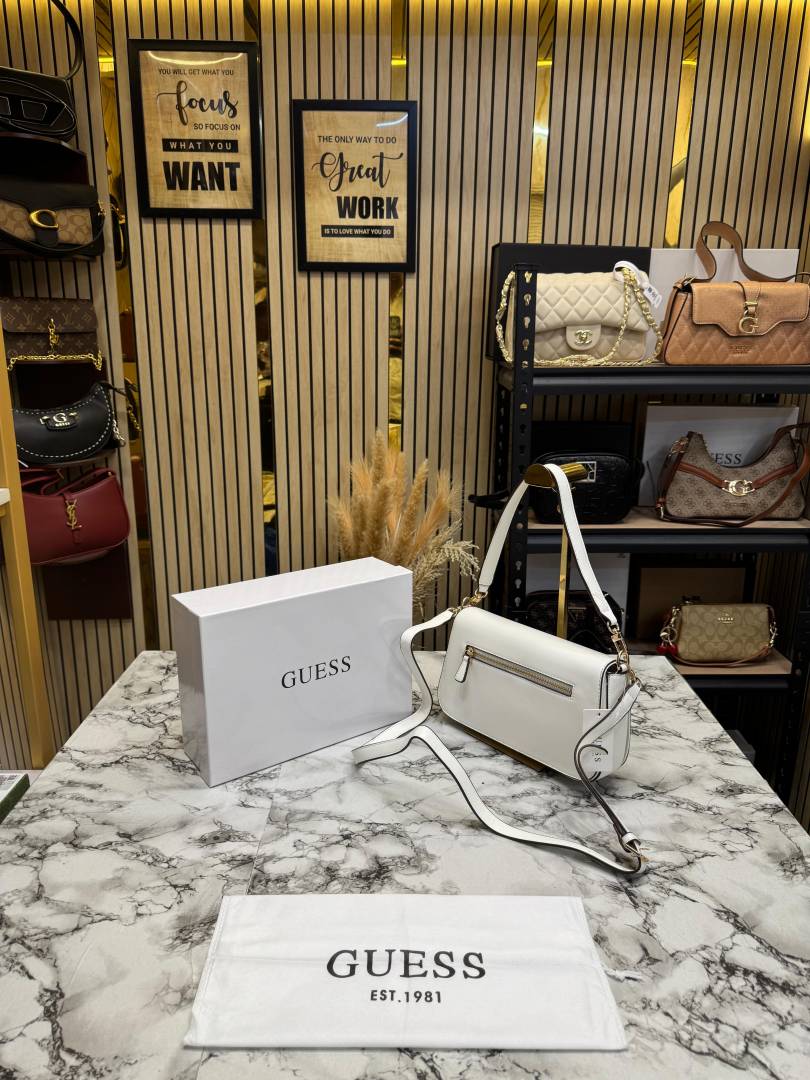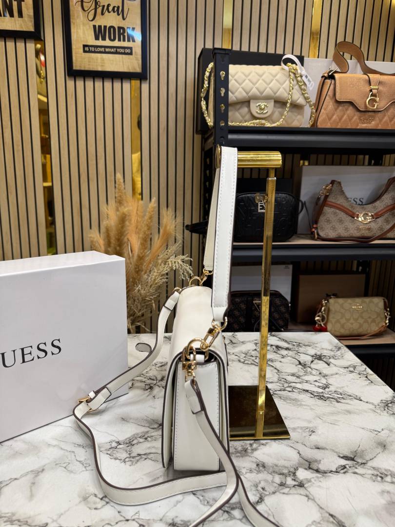 Guess Womens Eco Mietta Flap Shoulder Bag With Box And Dust Bag (White)