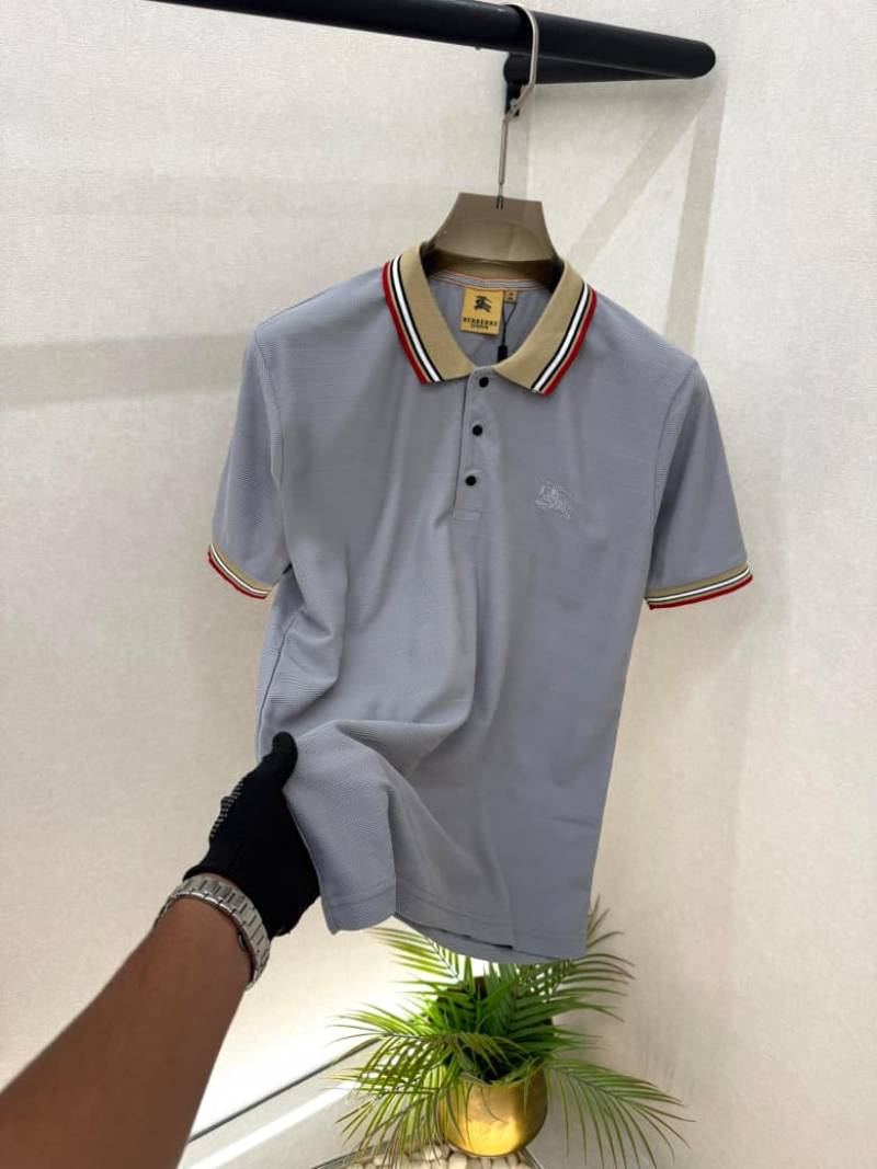 Burberr y Grey Embroidery Logo Premium Collar Neck Polo T-shirt With Brand Box Packing F3582-GY