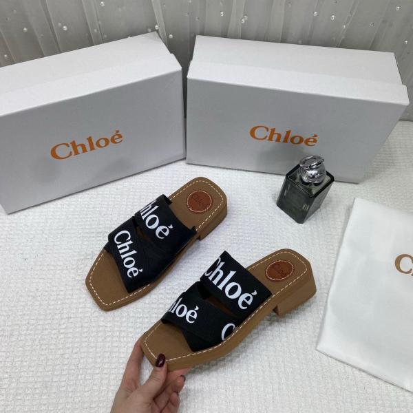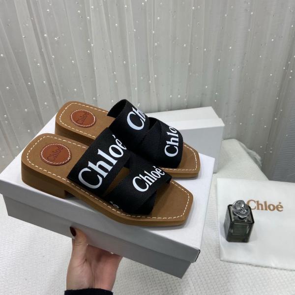 Chlo Premium Woody Slides With OG Box Dust Cover Black