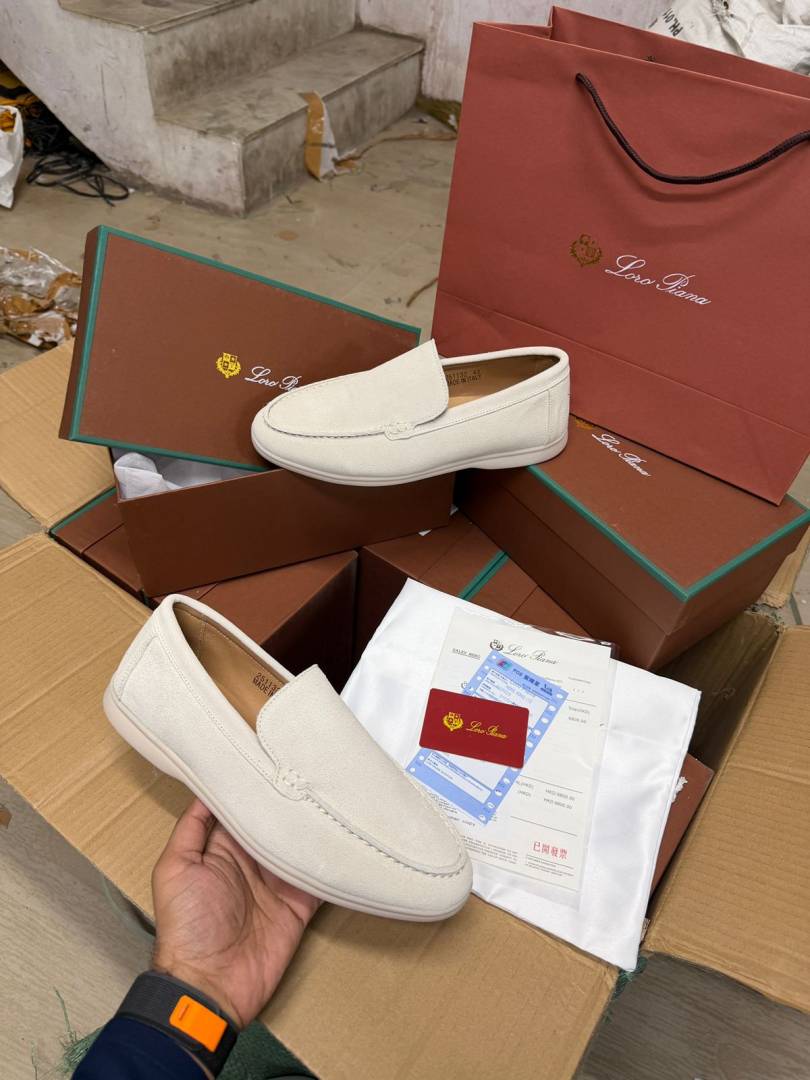 Loro Piana Summer Walk Loafer Pearl Powder White With OG Box & Carry Bag
