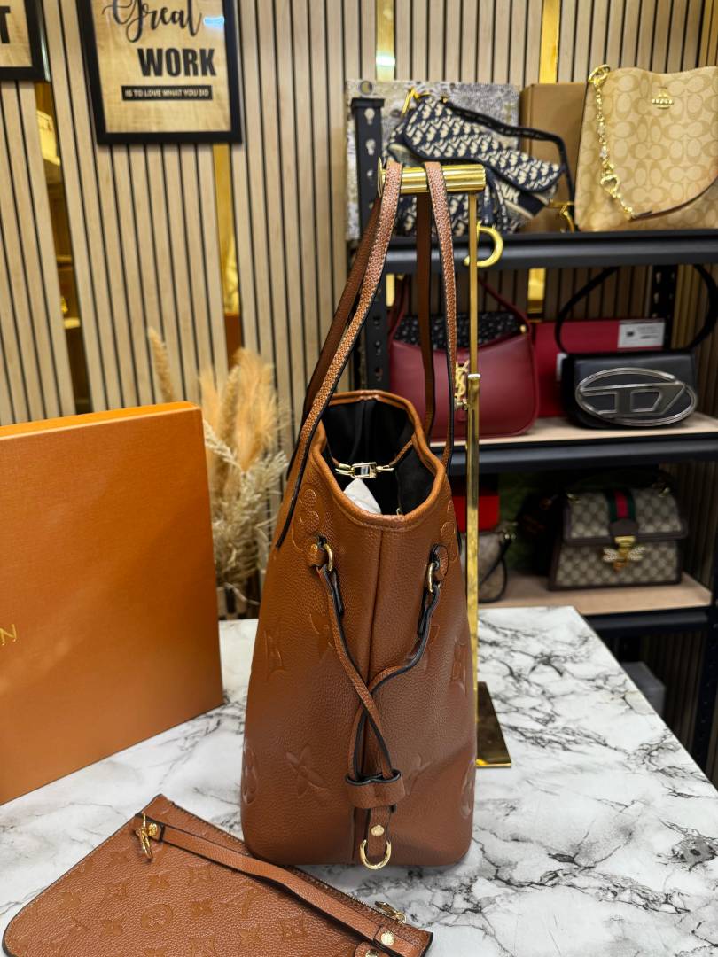 Loui_s Vuitton Neverfull Embossed Premium Quality Tote Bag With Box And Dust Bag (Brown)