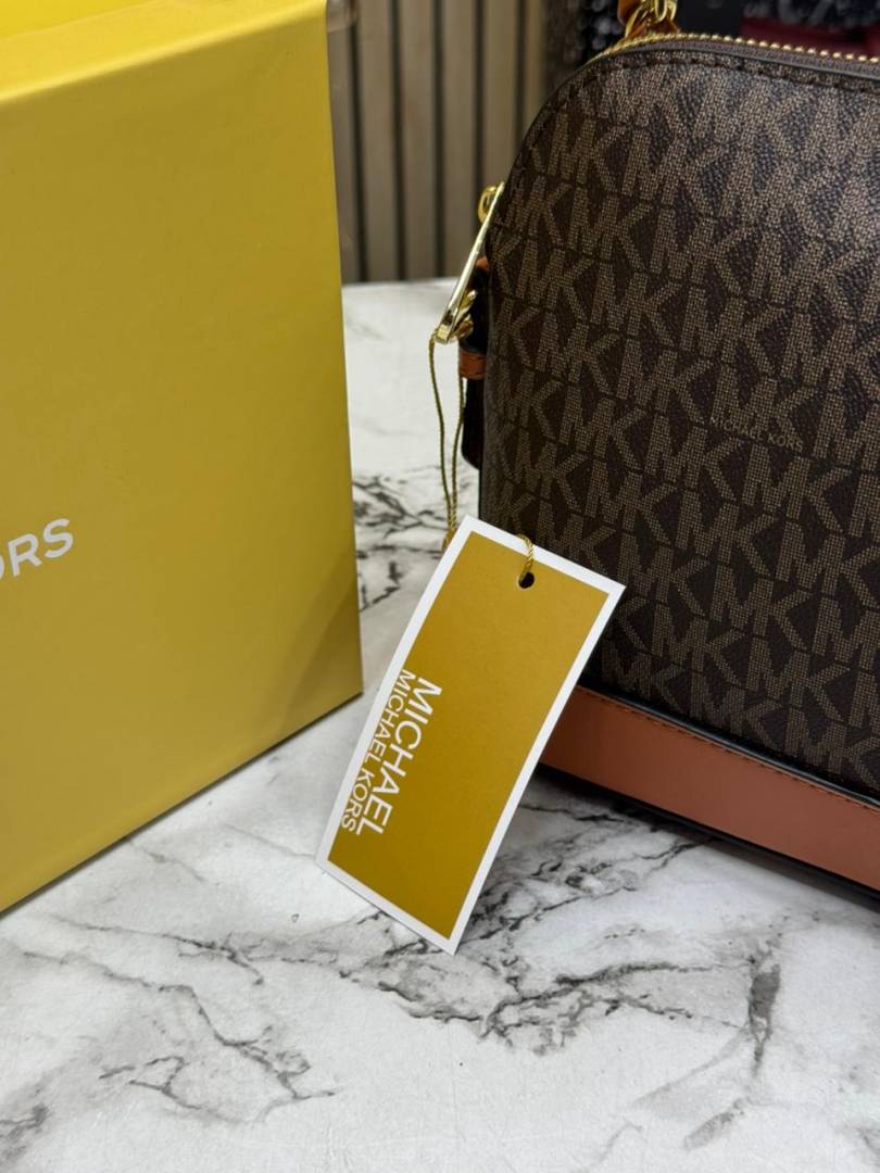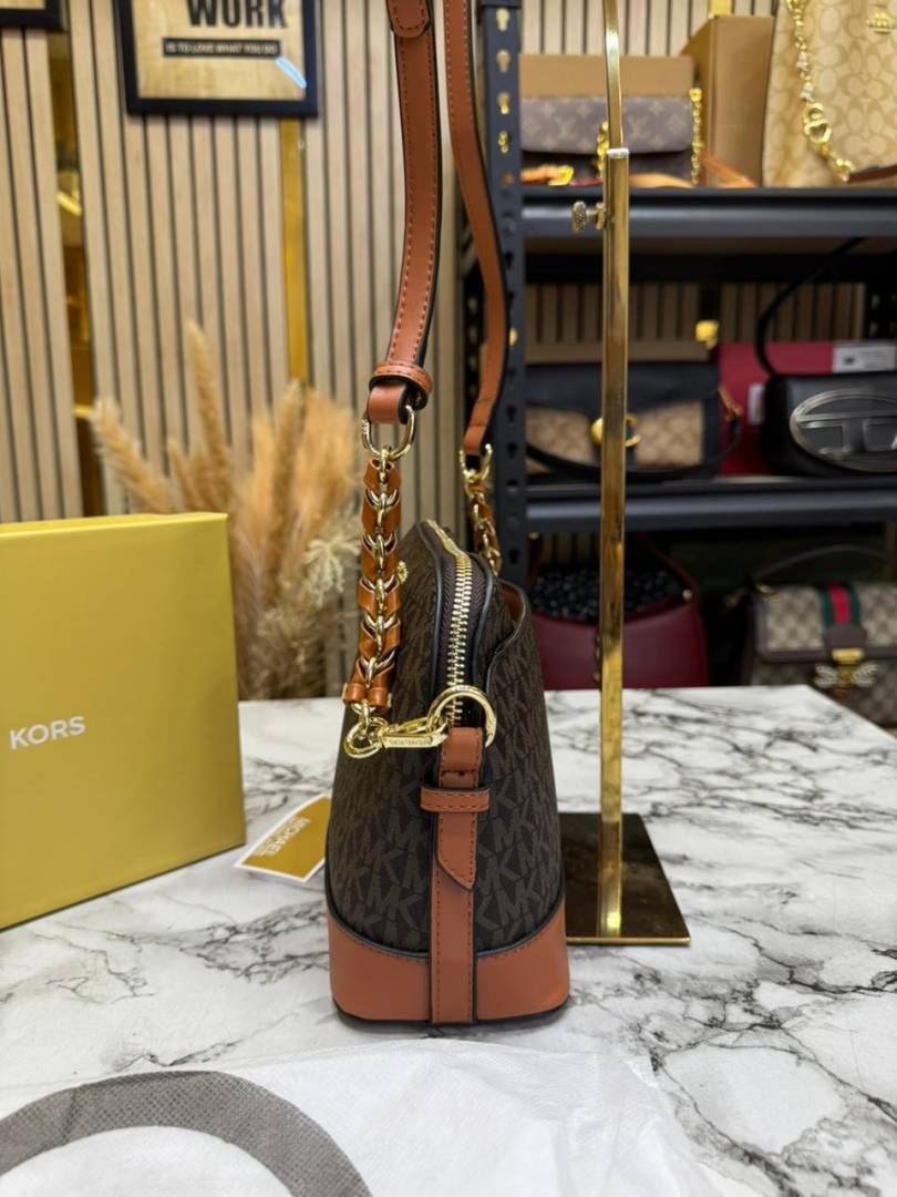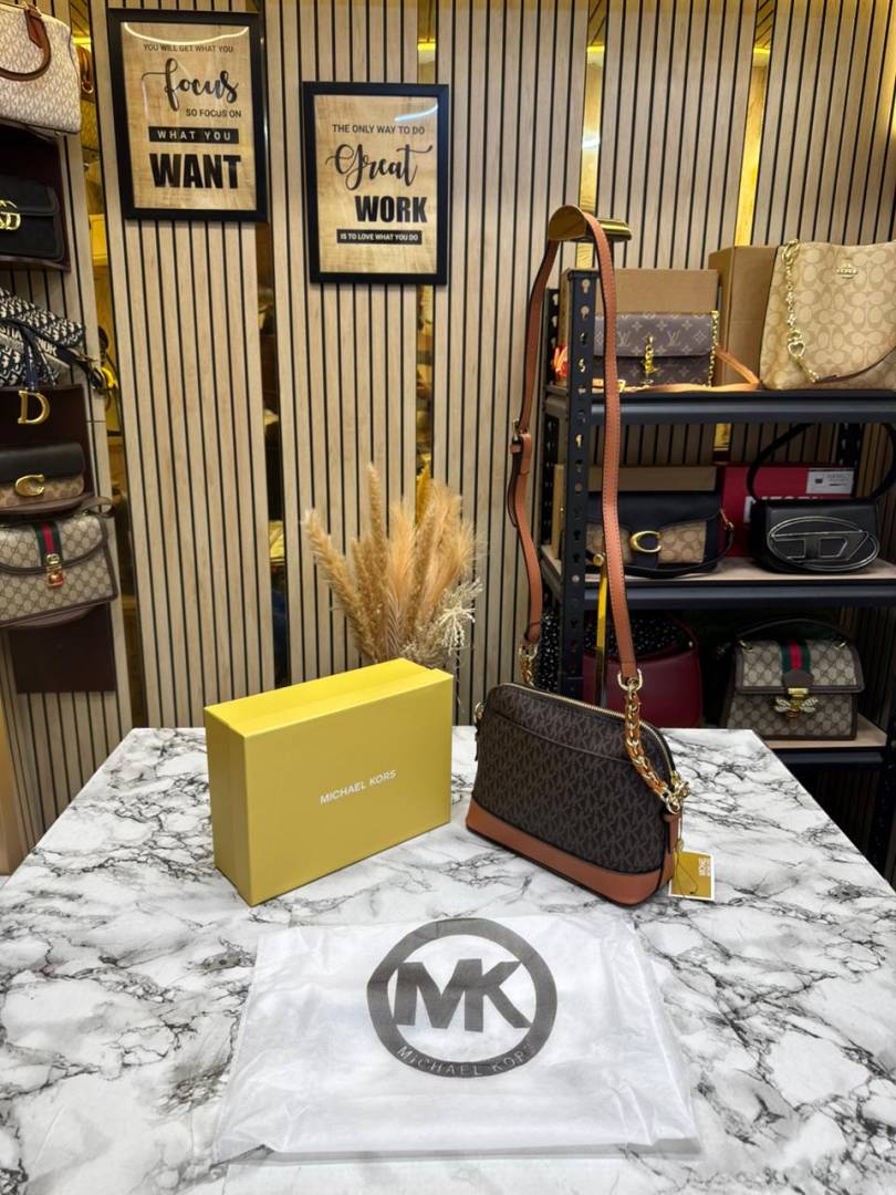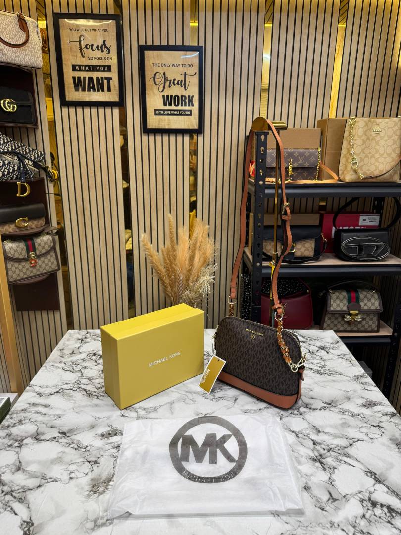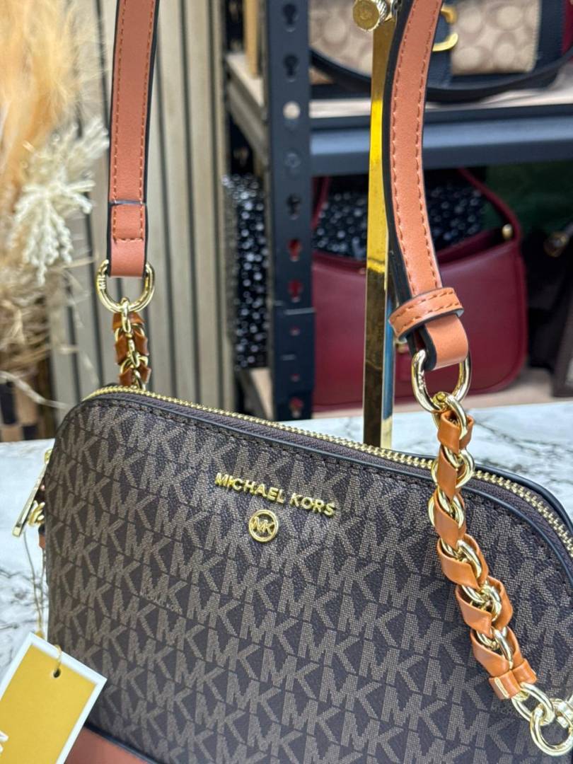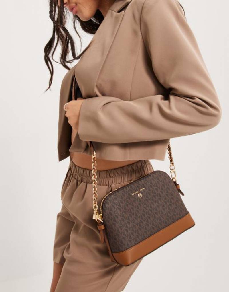 • Michael_Kors Jet Set Charm Logo Dome Saffiano Leather Crossbody Bag (Brown-23032)