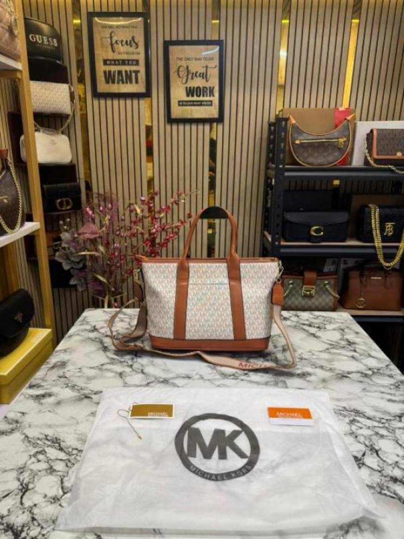 • Michael_Kors Logo Signature Satchel Handbag With Dust Bag (Beige) (V-24002)