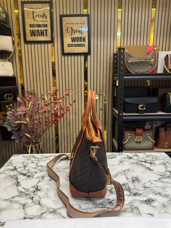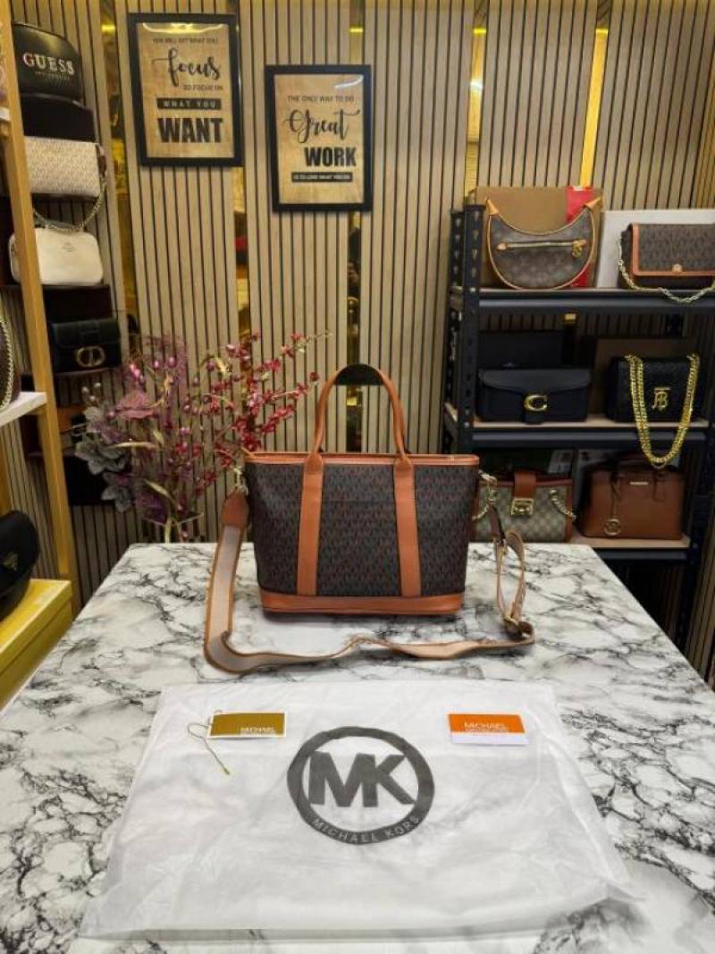 • Michael_Kors Logo Signature Satchel Handbag With Dust Bag (Brown) (V-24002)