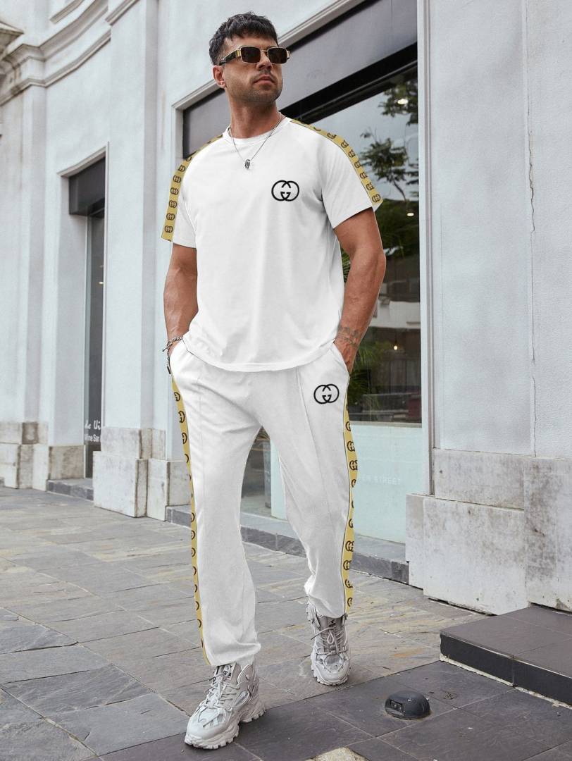 Gucc i Imported White Monogram Super Premium Track Suit With Brand Carry Bag F3149-WH