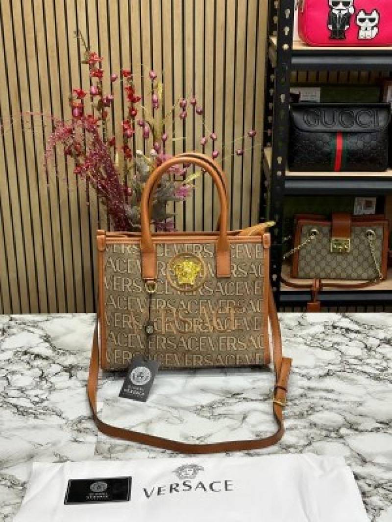 VERSACE LA VACANZA HAND BAG WITH DUST BAG (BROWN)
