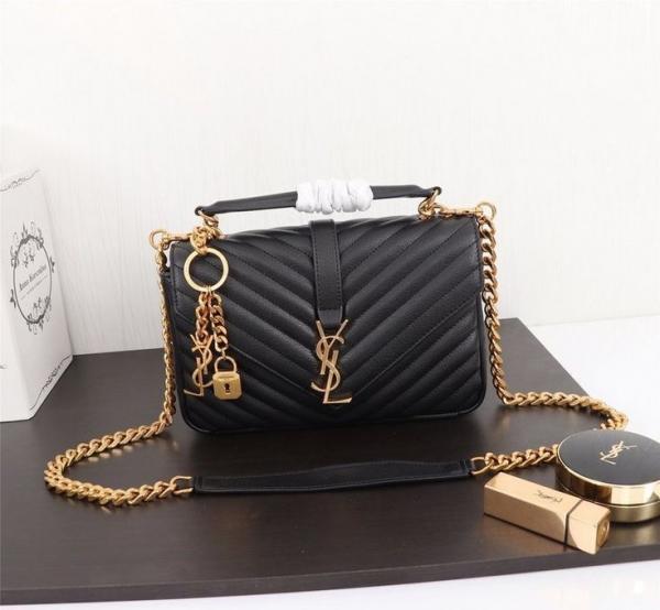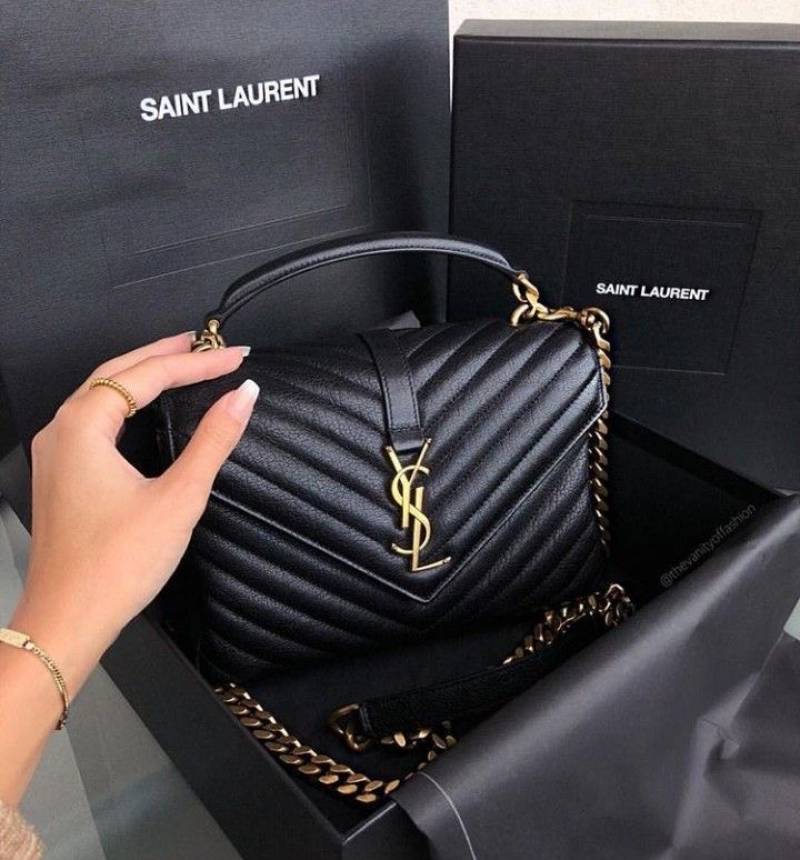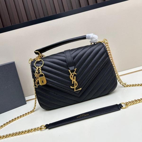Ysl Collage Black-Gold Medium Shoulder Bag With Original Box & Dust Cover