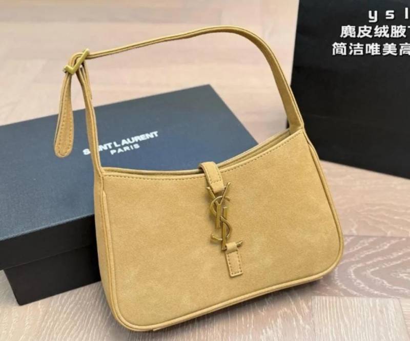 • Ysl Saint Laurent Hobo Khakhi Gold Leather Shoulder Bag With OG Box & Dust Bag 6030 Velvel Khakhi