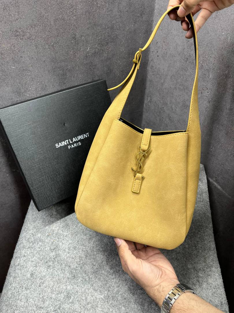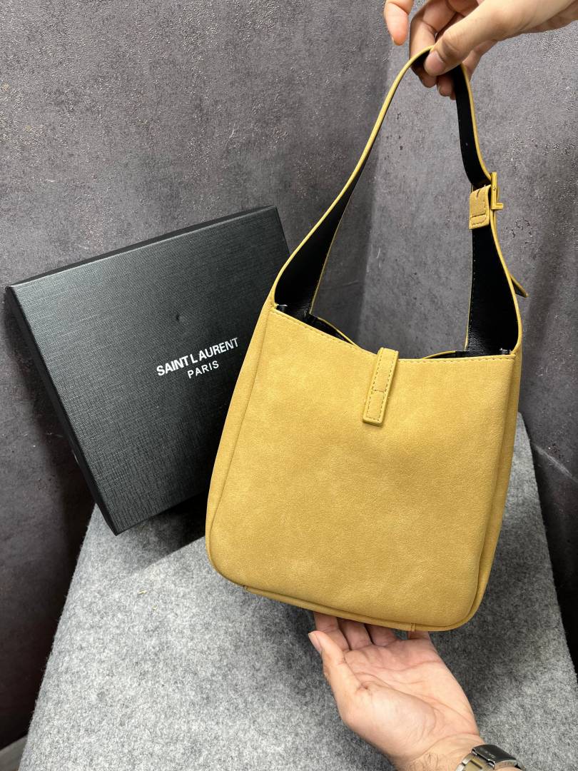 Ysl Saint Laurent Le 5 7 Mini Hobo Textured-Leather Apricot Khakhi Shoulder Bag With OG Box Dust cover & Carry Bag Apricot Khakhi 6090